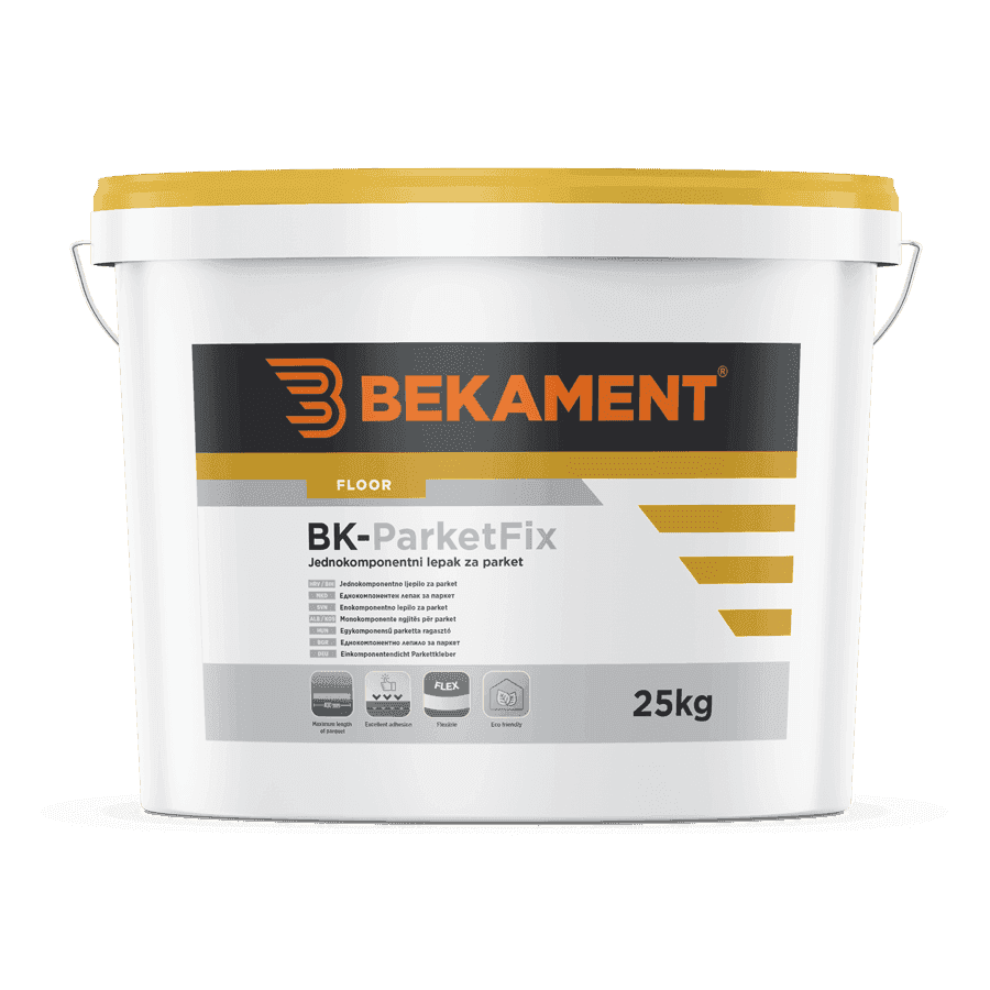 Podloga na koju se nanosi lepak mora biti čvrsta, čista, suva i bez ostataka starog ulja ili boje. Pre postavljanja parketa potrebno je izvršiti grundiranje podloge BK-ParketFix-om razređenim sa oko 30 % vode. Cementne podloge ne smeju imati više od 3 % vlage, a parket ne više od 8 %. Po potrebi lepak se može razrediti sa malom količinom vode do 1 % u cilju podešavanja konzistencije. Lepak se nanosi na podlogu nazubljenom gletericom u debljini sloja od 3-5 mm. Oblogu položiti i dobro pritisnuti. Brušenje parketa je moguće vršiti najmanje 24 h nakon lepljenja. Za detaljnija uputstva pogledati tehnički list proizvoda.