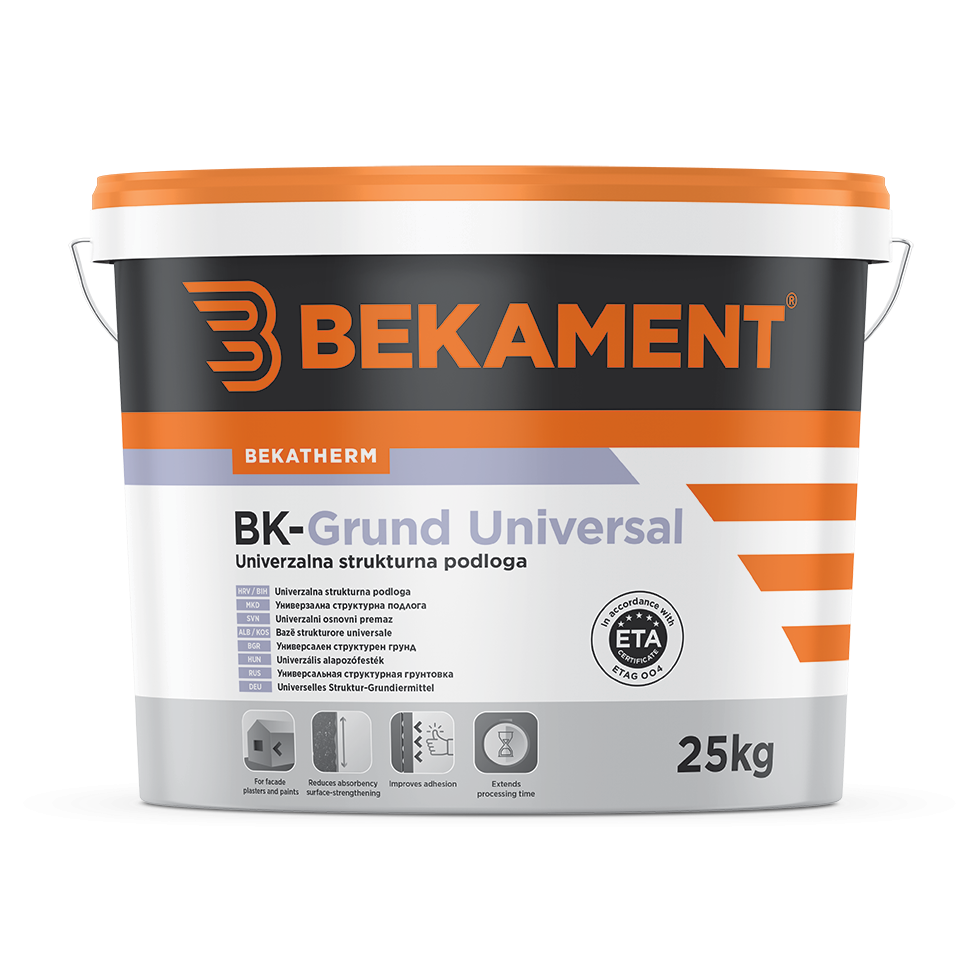 Univerzalna strukturna podloga namenjena za ujednačavanje, neutralizaciju, učvršćavanje i vodoodbojnost podloge pre nanošenja svih vrsta fasadnih boja i dekorativnih maltera, osim silikatnih boja/maltera. Preporučljivo je toniranje BK-Grund Universal podloge u istoj nijansi kao završni sloj.