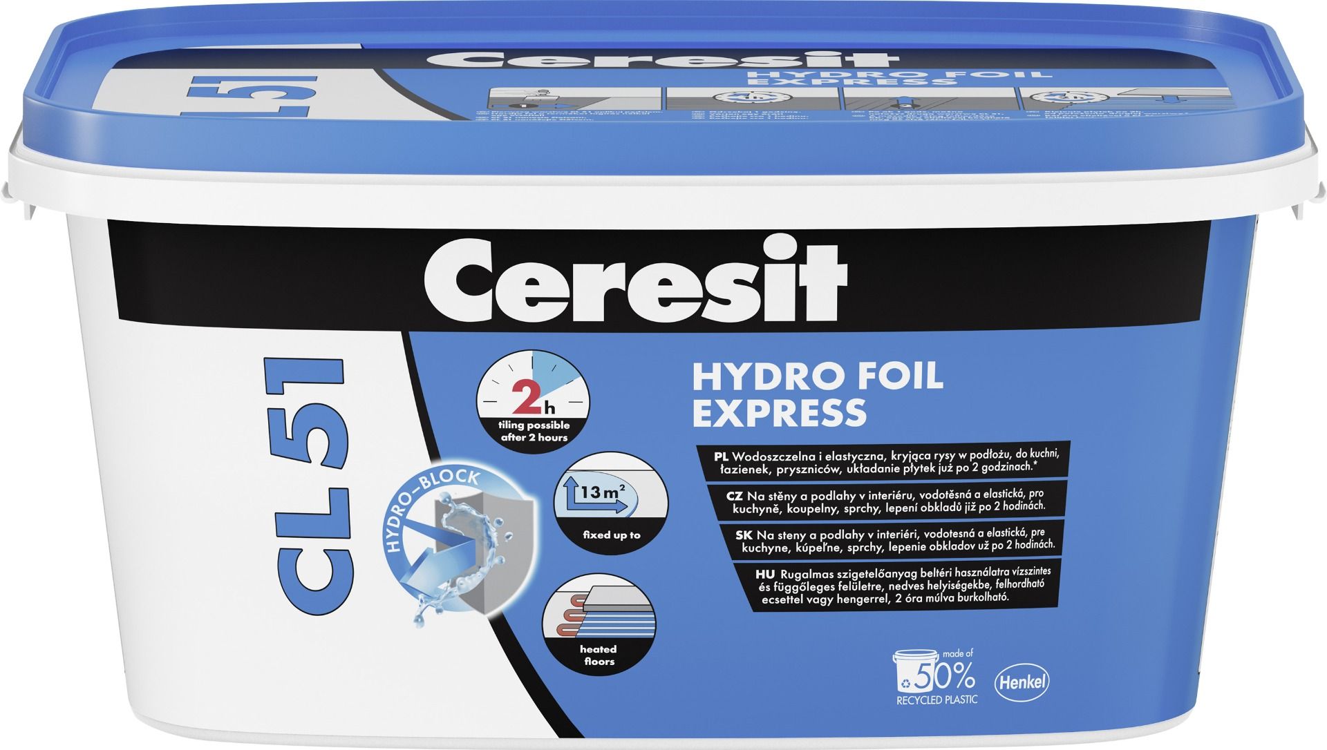 CERESIT® CL 51 je jednokomponentni fleksibilni premaz za hidroizolaciju ispod keramičkih pločica u vlažnim i mokrim uslovima (kupatila, tuš kabine, kuhinje, javni toaleti i slično). Pogodan je samo za unutrašnju upotrebu. U slučaju podnih konstrukcija sa izolacionim slojem CL 51 se nanosi direktno na sloj za preraspodelu opterećenja. Takođe, pogodan je za upotrebu na sistemima sa podnim grejanjem.