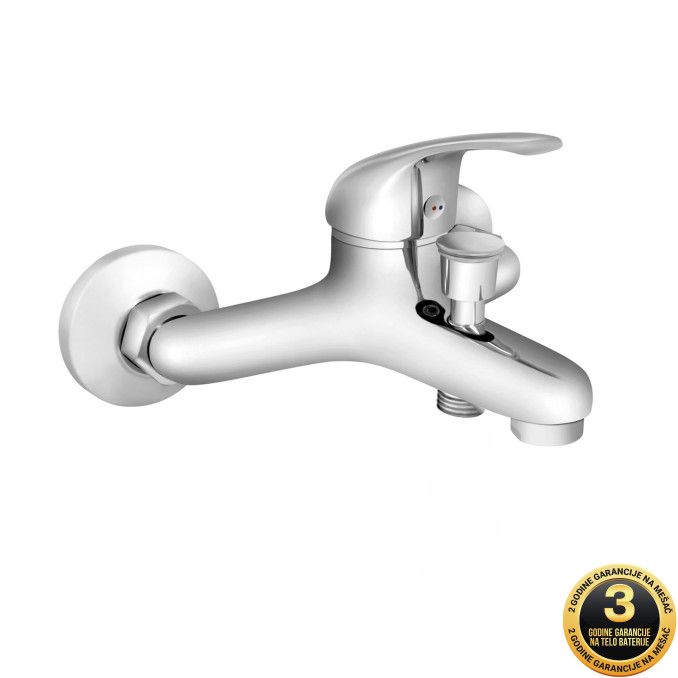 Baterija za kadu MINOTTI EKONOMIK 3111 Dolazi u kompletu sa tuš crevom, ručicom i držačem Hromirani mesing Savet Da bi površina baterije što duže bila u besprekornom stanju, za čišćenje koristite samo meku krpu i vodu. Hemijska i abrazivna sredstva mogu oštetiti telo baterije.