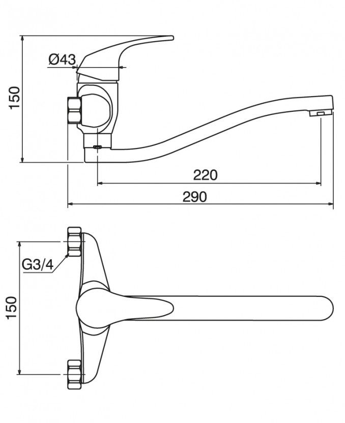 Jednorucna baterija za sudoperu MINOTTI EVA 7115-L. Duža lula. Zidna instalacija. Savet Da bi površina baterije što duže bila u besprekornom stanju, za