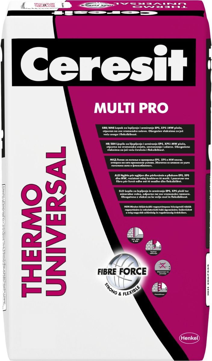 CERESIT Thermo Universal je namenjen lepljenju ekspandiranog polistirena i formiranju tankog armaturnog sloja u kombinaciji sa staklenom mrežicom CT 325. Primenljiv na novim zidanim objektima kao i na postojećim objektima koji treba da budu termoizolovani.