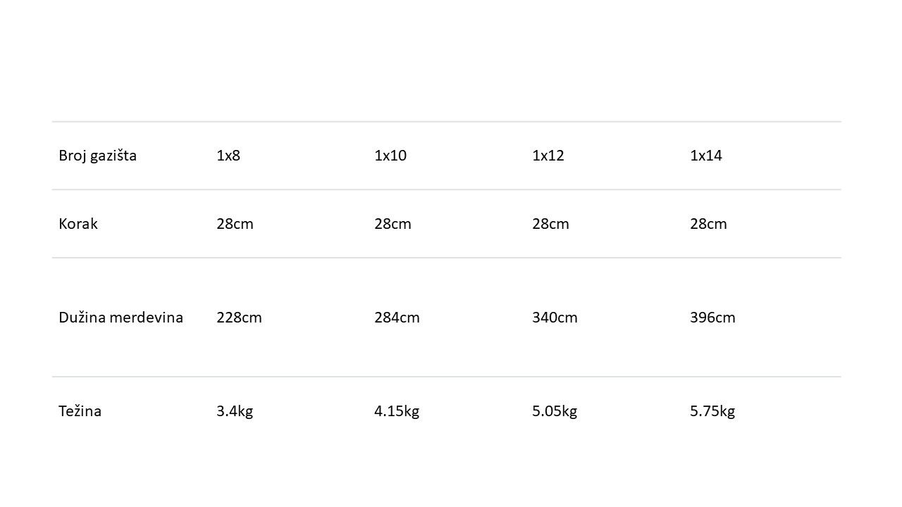 Jednodelne aluminijumske merdevine sa 12 gazišta.