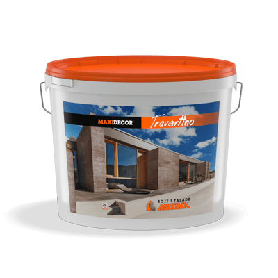 KARAKTERISTIKE MAXIDECOR Travertino je specijalni dekorativni suvi tip maltera, namenjen dekorativnoj zaštiti unutrašnjih i spoljašnjih mineralnih površina. Brižljivo je kreiran od posebno selektovanih mermernih agregata, visoko kvalitetnog cementa, polimera i aditiva, kako bi se postigao efekat imitacije prirodnog kamena sa akcentovanim „žilama“ i teksturom. Odlikuje ga odlično prianjanje na mineralne površine, dobra paropropusnost, izuzetna vodoodbojnost i otpornost na vremenske uticaje i UV zračenje.