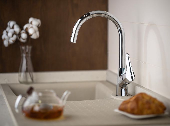 Baterija za sudoperu MINOTTI PRIMA 4501-3 Dolazi u kompletu sa brinoks crevima i fiksatorom Namenjena je za kuhinje koje dobijaju vodu iz kuhinjskog bojlera i rad pod niskim pritiskom Moderna labud lula Savet Da bi površina baterije štoduže bila u besprekornom stanju, za cišcenje koristite samo meku krpu i vodu. Hemijska i abrazivna sredstva mogu oštetiti telo baterije.