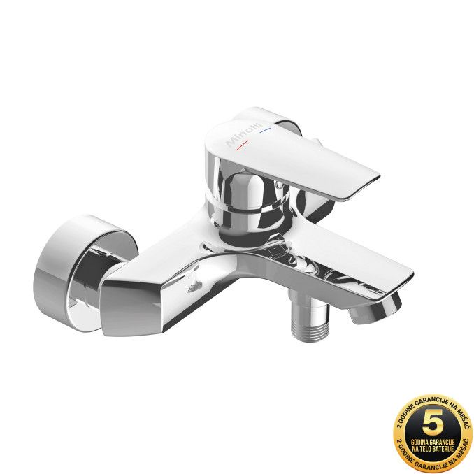 Baterija za kadu MINOTTI PRIMA 4111D Dolazi u kompletu sa tuš crevom, rucicom i držacem Donji prebacivac je idealno rešenje za rad pod niskim pritskom Savet Da bi površina baterije što duže bila u besprekornom stanju, za cišcenje koristite samo meku krpu i vodu. Hemijska i abrazivna sredstva mogu oštetiti telo baterije.