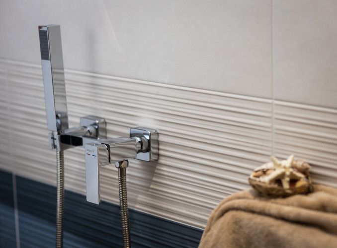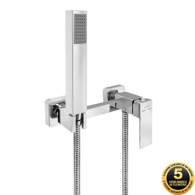 Baterija za tuš kabinu MINOTTI QUADRA 1113 U kompletu sa tuš crevom, rucicom i držacem Hromirani mesing Savet Da bi površina baterije što duže bila u besprekornom stanju, za cišcenje koristite samo meku krpu i vodu. Hemijska i abrazivna sredstva mogu oštetiti telo baterije.
