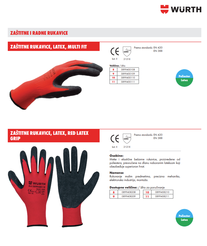 Meke i elastične bešavne rukavice, proizvedene od poliestera, presvučene na dlanu naboranim lateksom koji obezbeđuje superioran hvat. 2121X kat. II EN 420 EN 388