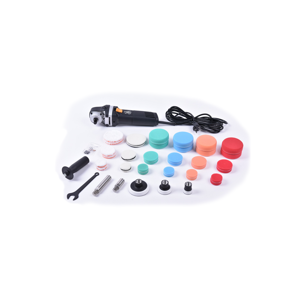 Ulazna snaga: Rangirano 600W Brzina bez opterećenja: 700~2500 /min Nosač: preporučeno 32-74mm(1.2-3 inch), Max. 98mm(4 inch) Nosač: Sunđer/Vuna preporučeno 40-100mm(1.5-4 inch) Max. 125mm(5 inch) Neto težina 1.65 kg Navoj: M14 Dodaci 1.2”,2”,3” diskovi, Produžna osovina, ključ, Bočni Držač Preporučena oprema za detalje i male opravke MPK3 Fleksibilni set