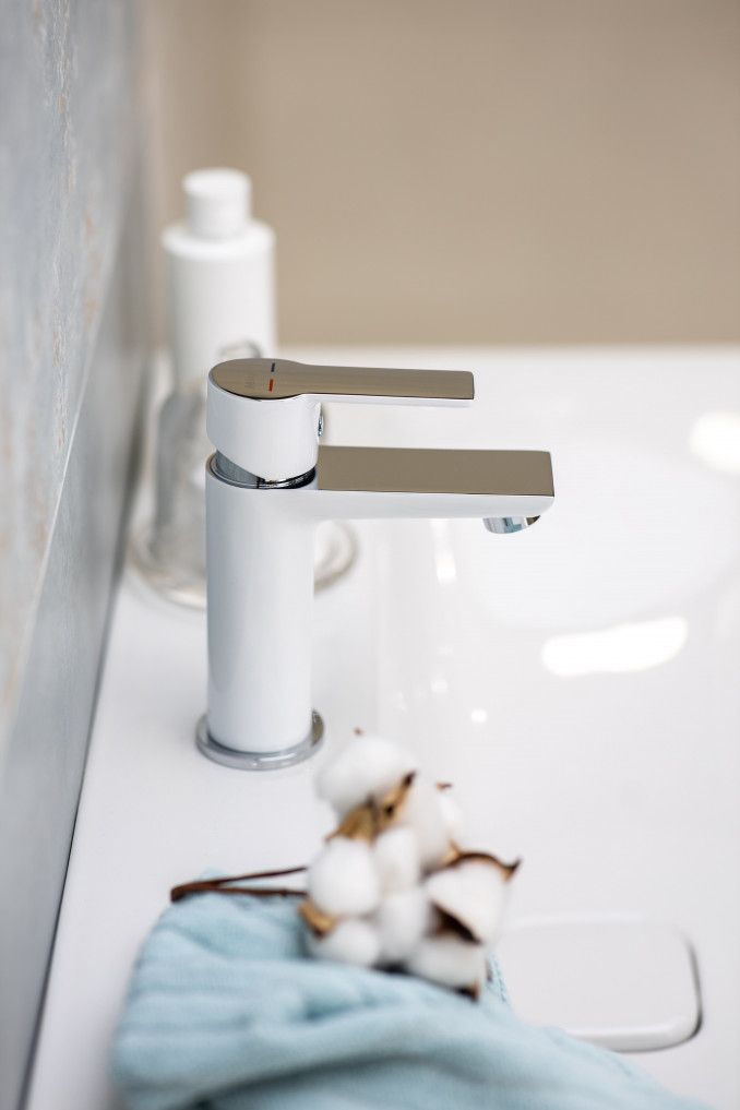 Baterija za lavabo MINOTTI STELA 2212 Dolazi u kompletu sa brinoks crevima i fiksatorom Kombinacija bele i hrom boje Savet Da bi površina baterije što duže bila u besprekornom stanju, za čišćenje koristite samo meku krpu i vodu. Hemijska i abrazivna sredstva mogu oštetiti telo baterije.
