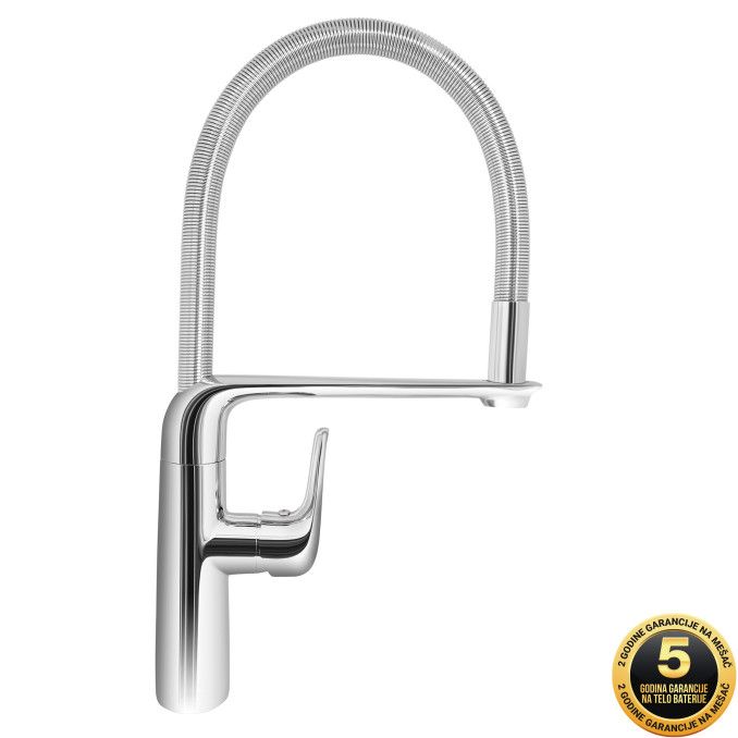 Baterija za sudoperu MINOTTI STELA 2120 Dolazi u kompletu sa brinoks crevima i fiksatorom Namenjena je za kuhinje koje dobijaju vodu iz centralnog bojlera, i rad pod visokim pritiskom Profesionalna gibljiva lula Savet Da bi površina baterije što duže bila u besprekornom stanju, za cišcenje koristite samo meku krpu i vodu. Hemijska i abrazivna sredstva mogu oštetiti telo baterije.