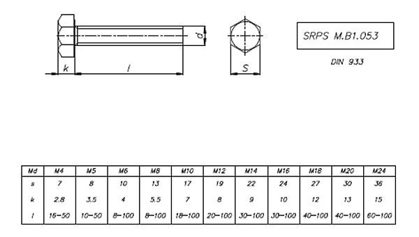 Mašinski vijak sa šestougaonom glavom i navojem do glave