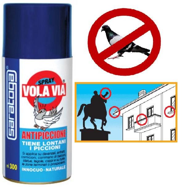 PODRUCJA PRIMENE Saratoga Vola Via, je efikasan tretman za zaštitu površina od prisustva ptica, bilo da su to golubovi, grlice, svrake. Koristi se za sva mesta gdje su ptice prisutne, ili gde se želi spreciti njihovo prisustvo i kolonizacija. Na osnovuferomona u disperziji, on fizicki ne eliminiše ptice i ne menja njihovu reprodukciju na bilo koji nacin, ali delujuc´i na olfaktornom nivou, prouzrokuje ih da se odmaknu. Ne mrlja, ne stvara lepljivost i ne ostavlja tragove. Ostaje bez ostavljanja vidljivih tragova, ne gubi boju, ne mrlja, ne oštec´uje oslikane površine. Nanosi se na prozore, klance, vence, rukohvate balkona, kipove, plocice, itd.