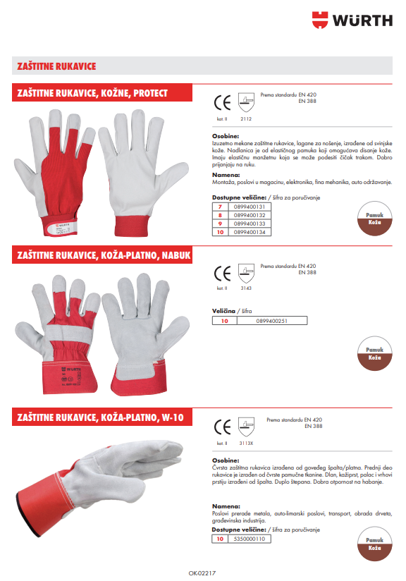 Izuzetno mekane zaštitne rukavice, lagane za nošenje, izrađene od svinjske kože. Nadlanica je od elastičnog pamuka koji omogućava disanje kože. Imaju elastičnu manžetnu koja se može podesiti čičak trakom. Dobro prijanjaju na ruku. Transportno pakovanje 12 kom.